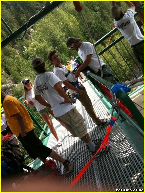 Зак Эфрон тщательно проверяет надетую на себя страховку, так как он захотел новых ощущений и собрался спрыгнуть с моста на Уистлере Банджи в Ванкувере, Канада, в субботу, во второй половине дня (18 июля).